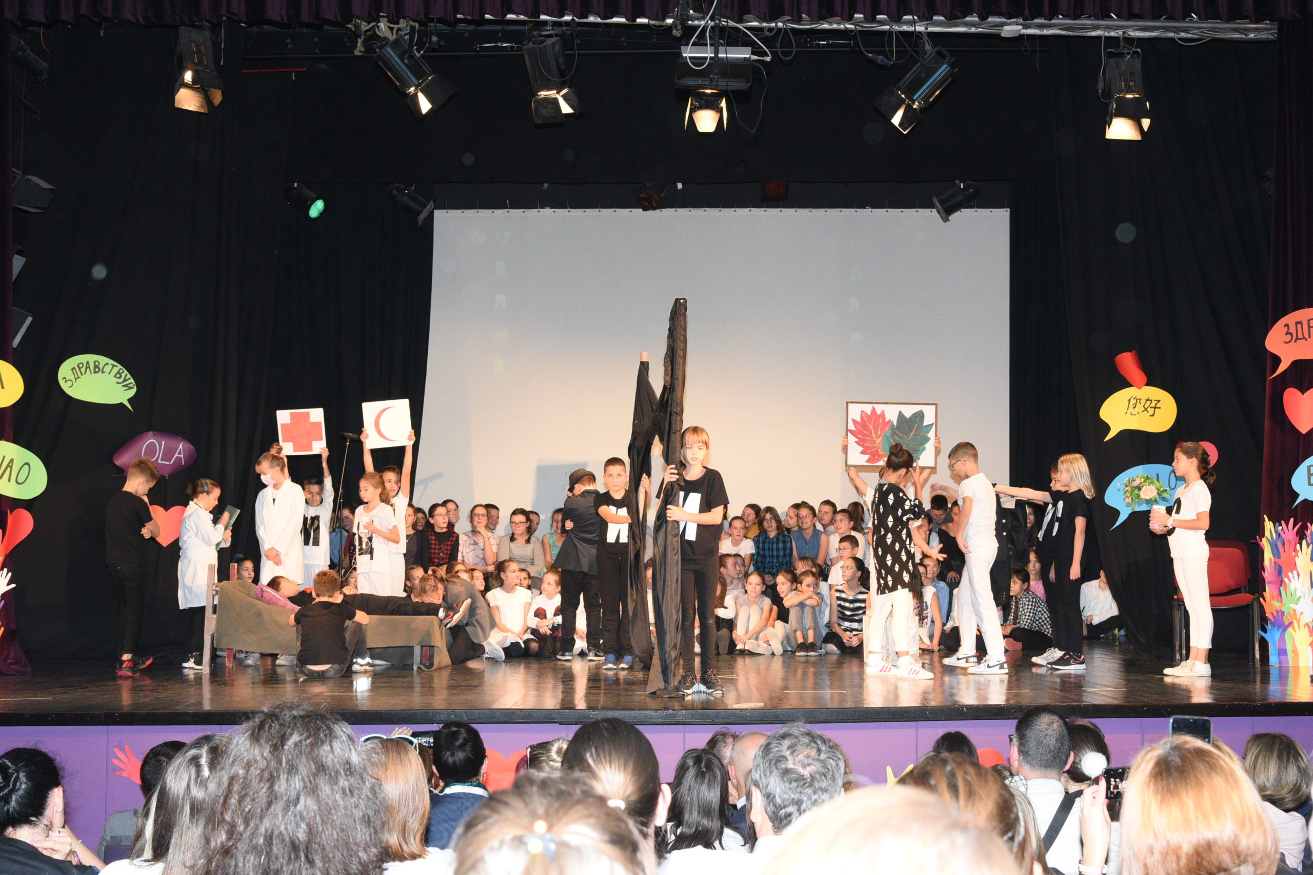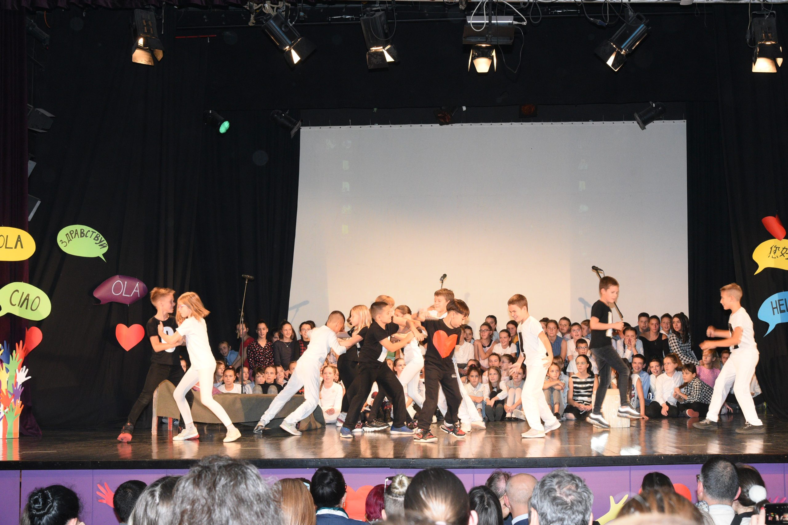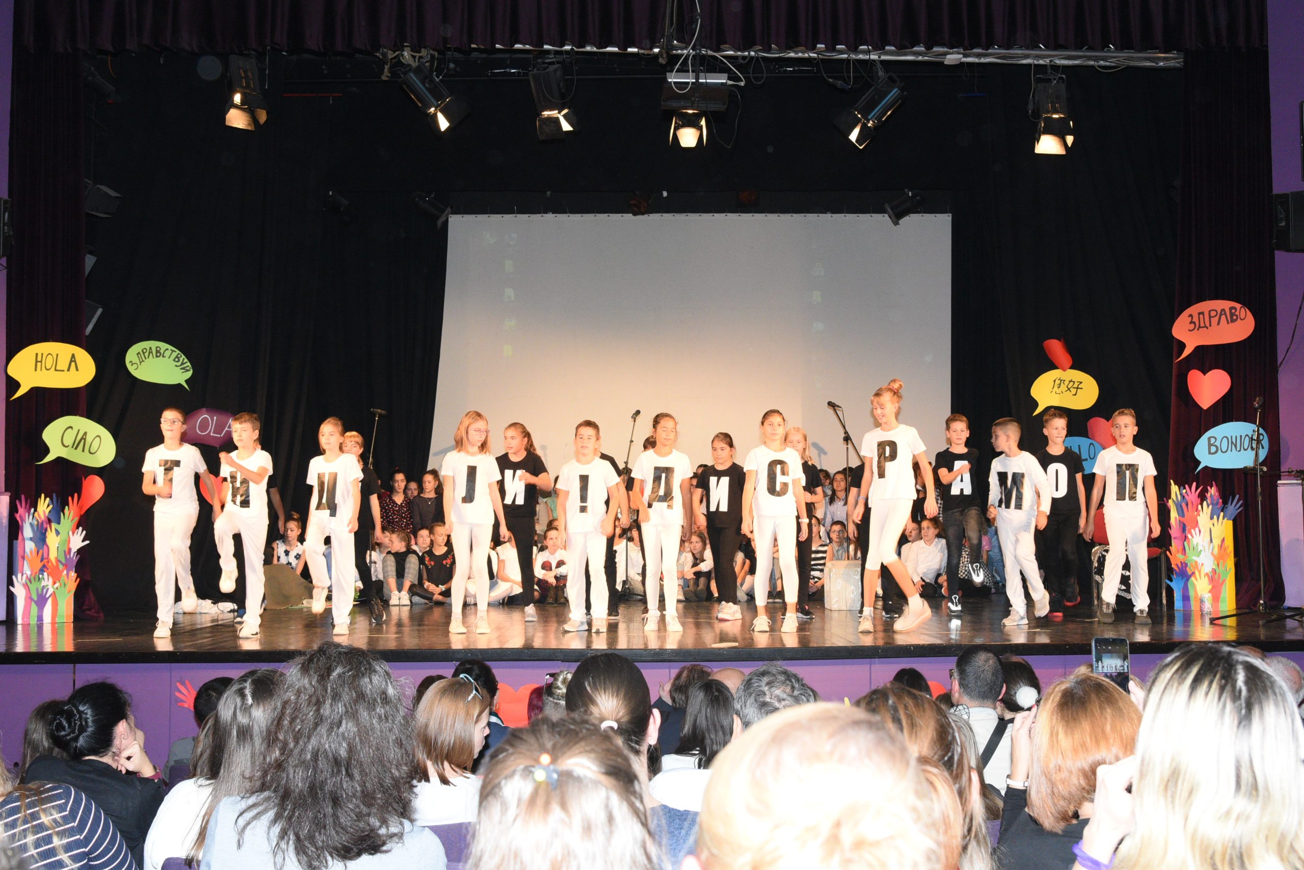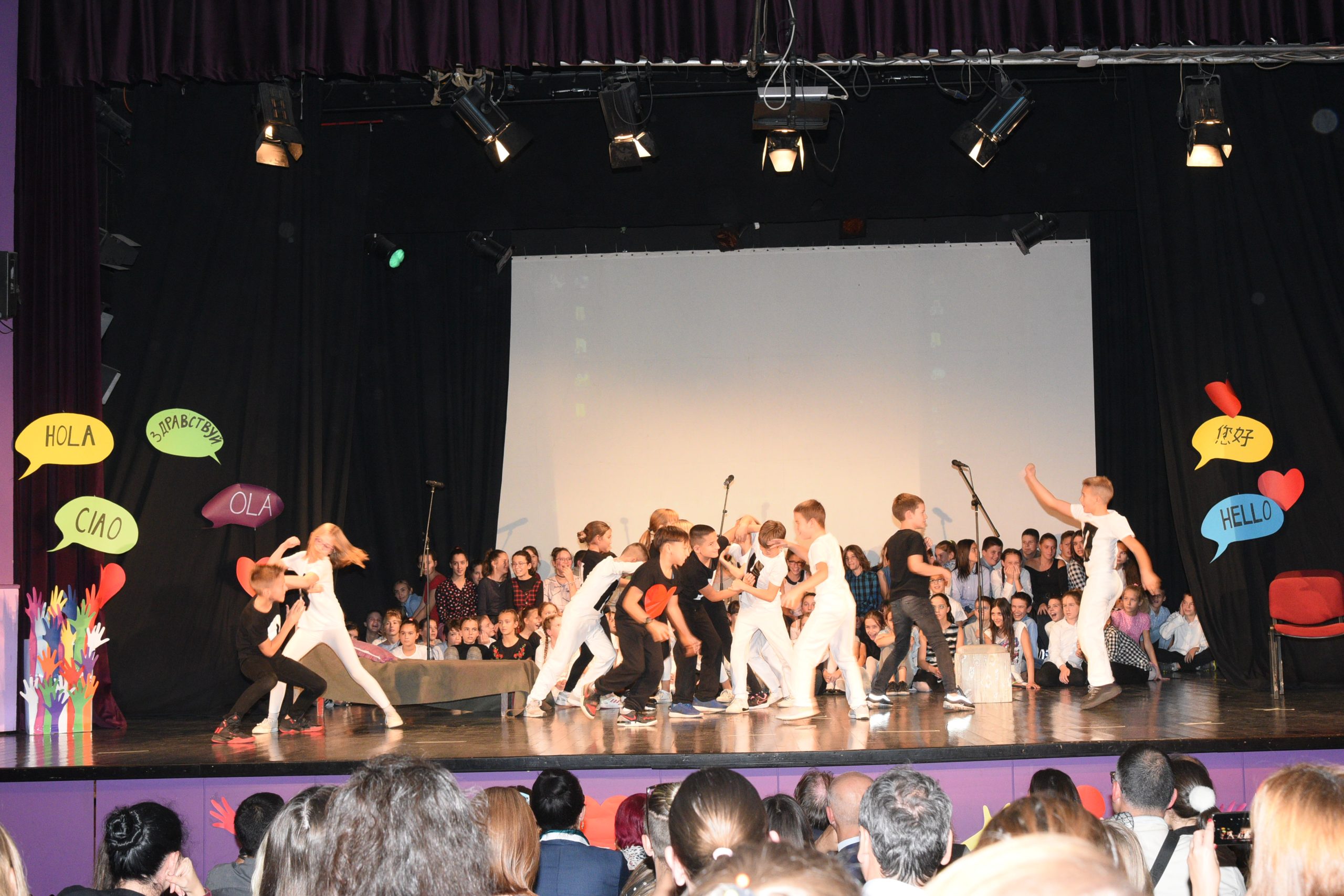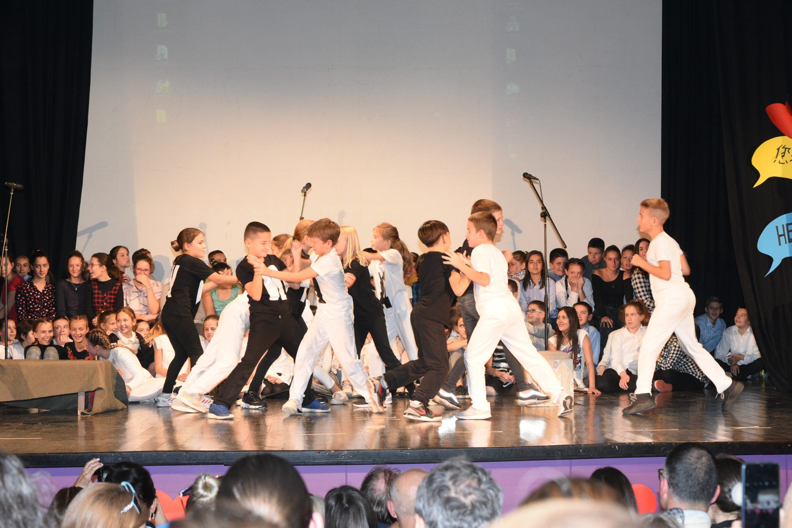 Музичко сценски приказ Стоп дискриминацији- стоп насиљу рађен је за потребе Дана школе чија је тема била Толеранија и пријатељство. Приказ је на основу покрета и музике хтео да дочара животне ситуације у којима се деца често налазе, али не успевају увек да их заобиђу. Сам приказ показује и улогу одраслих у решавању појединих проблема у којима се деца нађу.