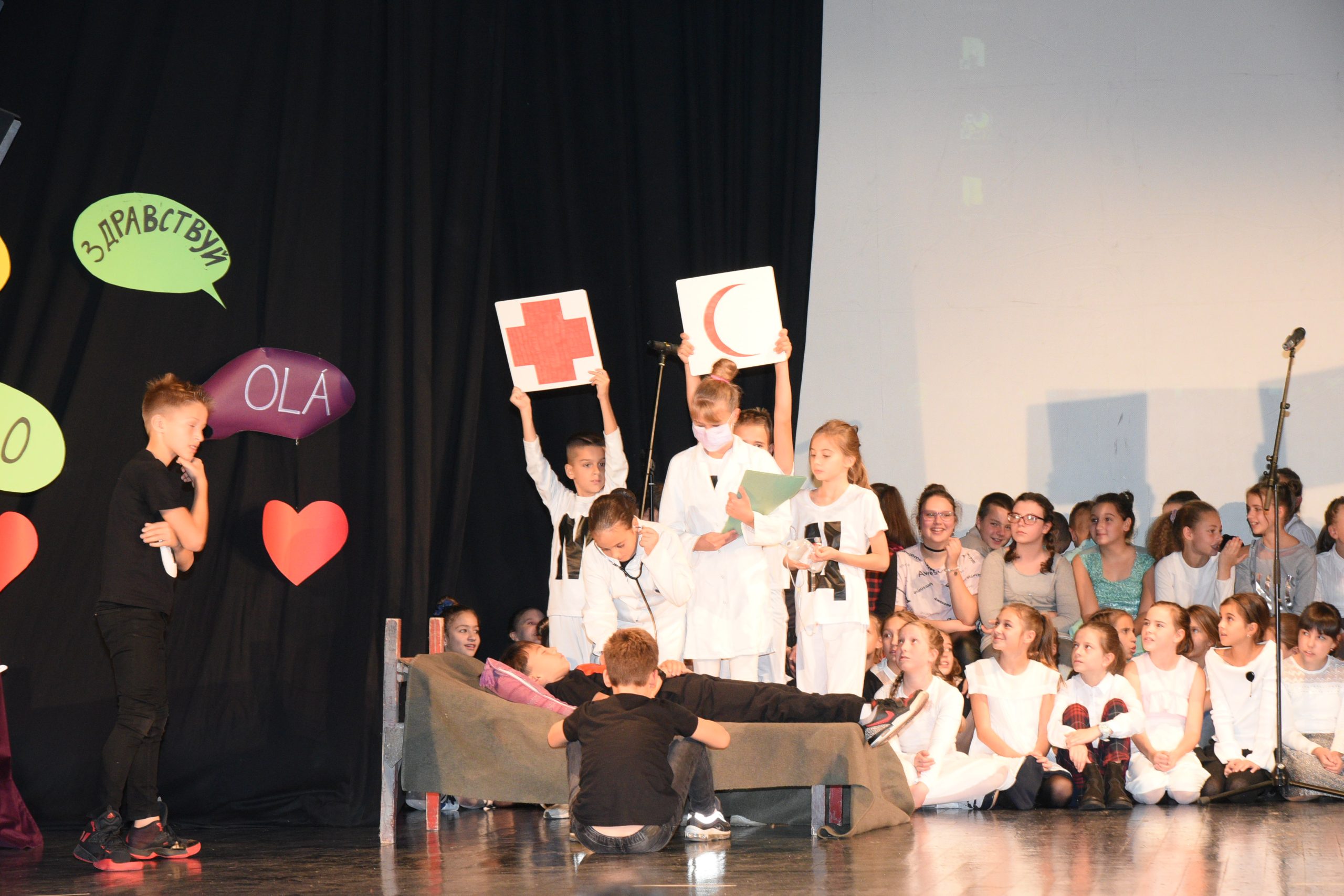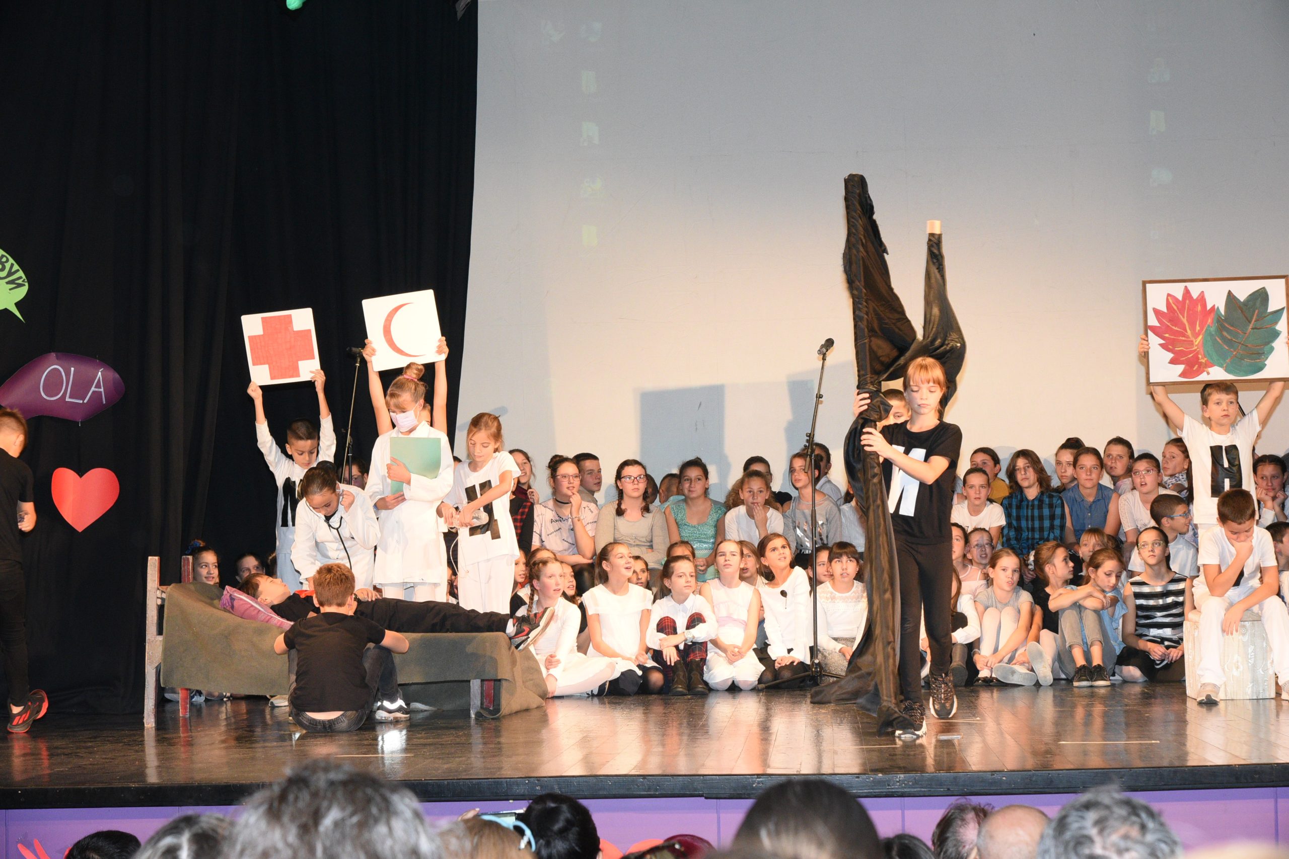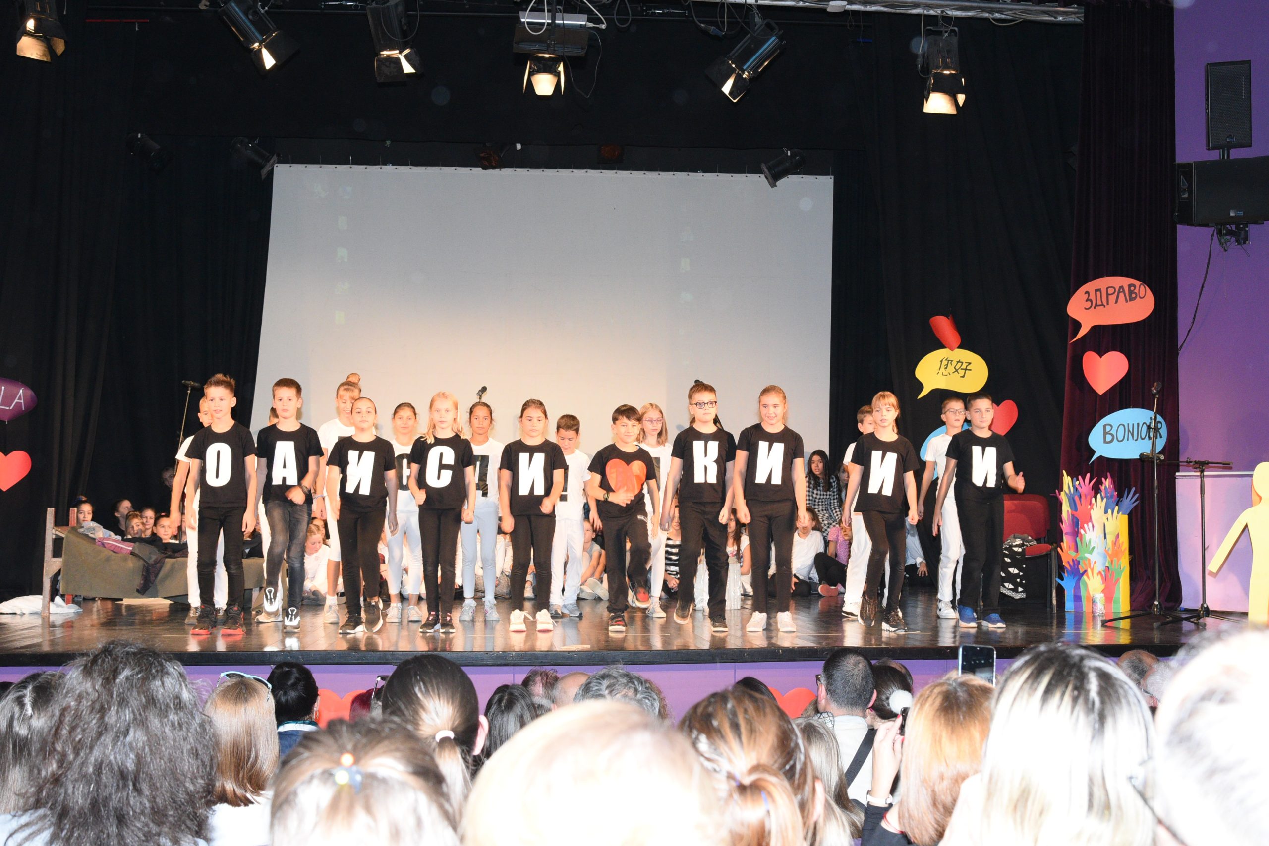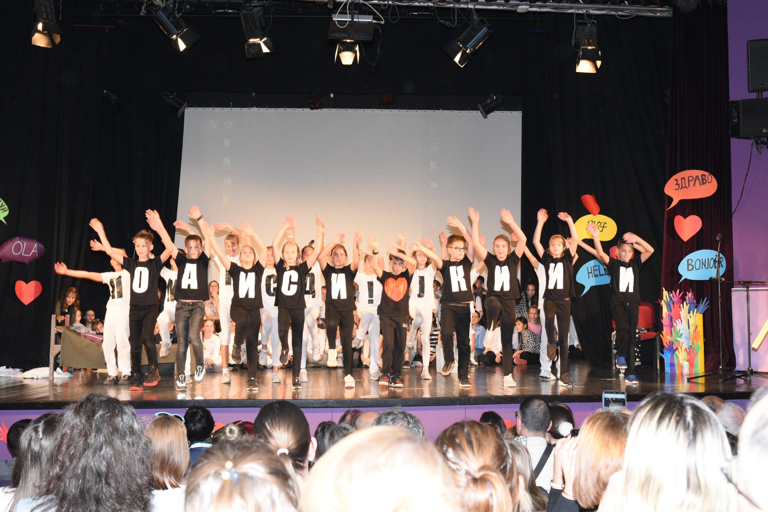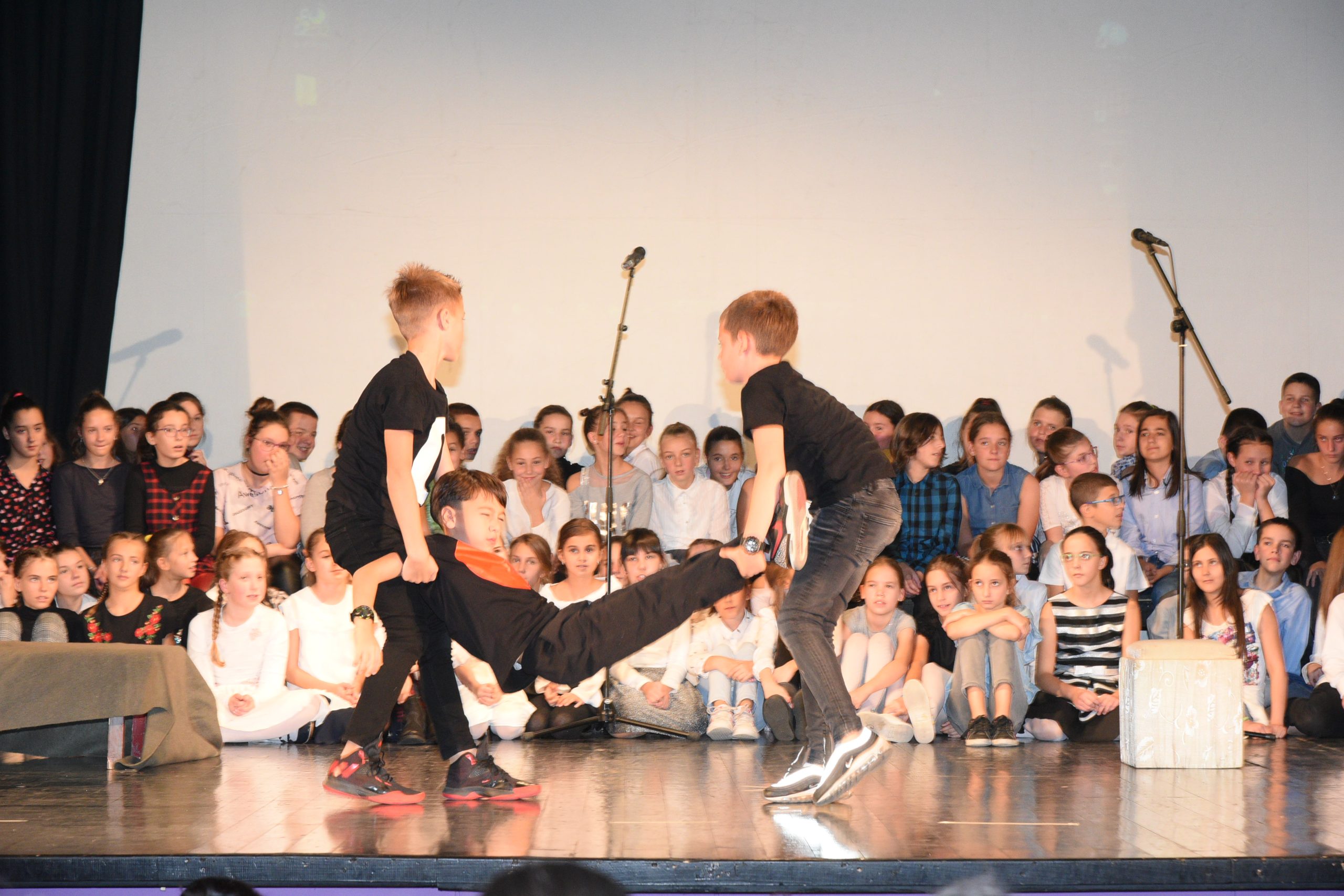 Музичко сценски приказ Стоп дискриминацији- стоп насиљу рађен је за потребе Дана школе чија је тема била Толеранија и пријатељство. Приказ је на основу покрета и музике хтео да дочара животне ситуације у којима се деца често налазе, али не успевају увек да их заобиђу. Сам приказ показује и улогу одраслих у решавању појединих проблема у којима се деца нађу.