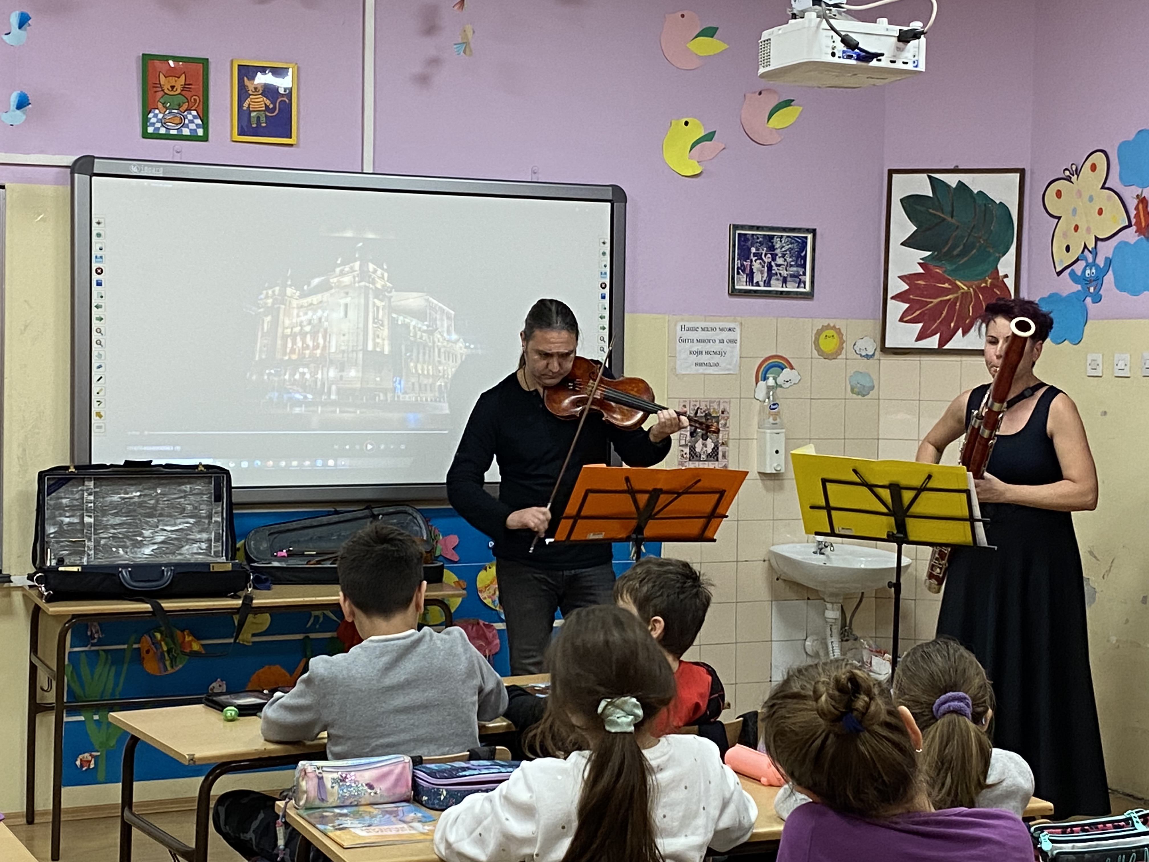 Čas je bio izuzetno zanimljiv. Deca su bila oduševljena mini koncertom. Nakon koncerta postavljala su veoma interesantna pitanja i dobili odgovore na sve što ih je zanimalo.